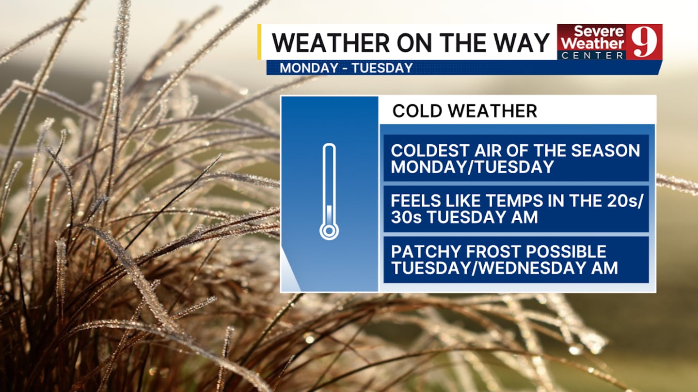 The bigger impact from this front will be the cold air that arrives early Monday.