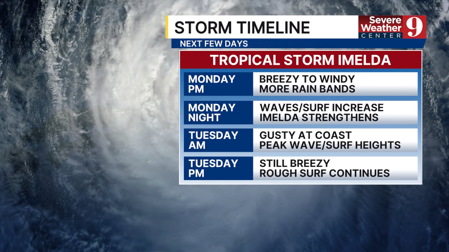 Winds are up to 65mph with Imelda, and are expected to become a hurricane overnight, early Tuesday morning.