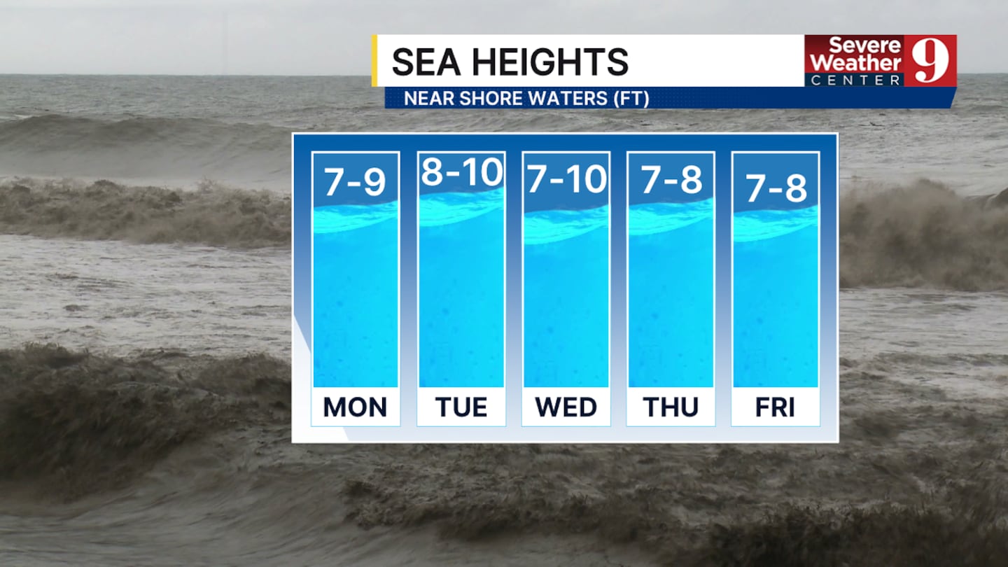 The track away from us for the rest of the week will keep the waves high near-shore for several more days as the wave swell energy from Humberto also arrives.