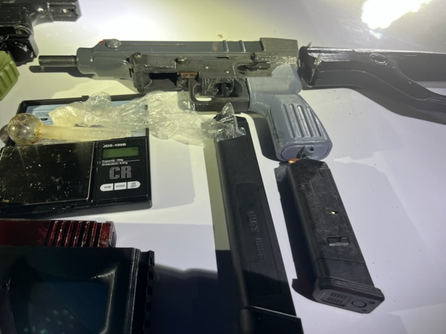 The investigation uncovered methamphetamine, THC concentrate, fentanyl, and several firearms, including unserialized, 3D-printed handguns and extra ammunition.