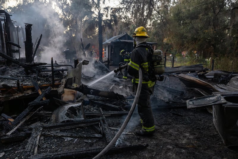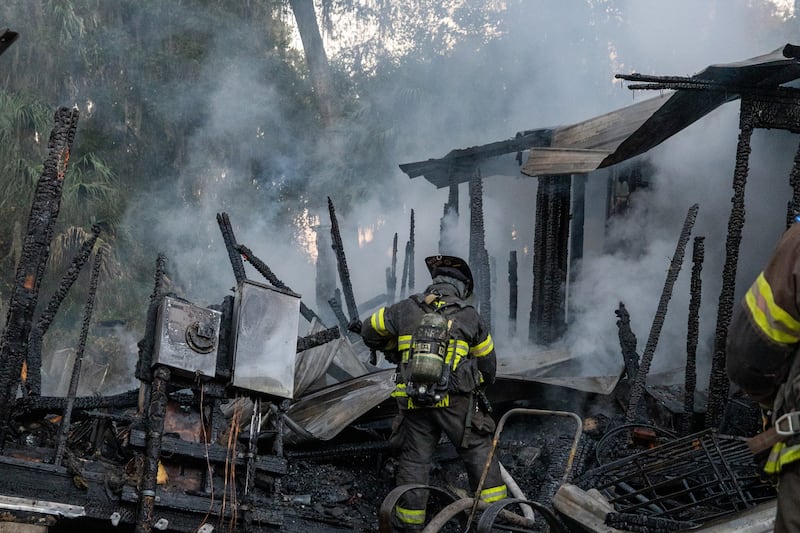 Multiple 911 callers reported the fire, involving a house and a nearby storage building, as fully engulfed in flames. Firefighters arrived first and found both structures heavily consumed by fire.