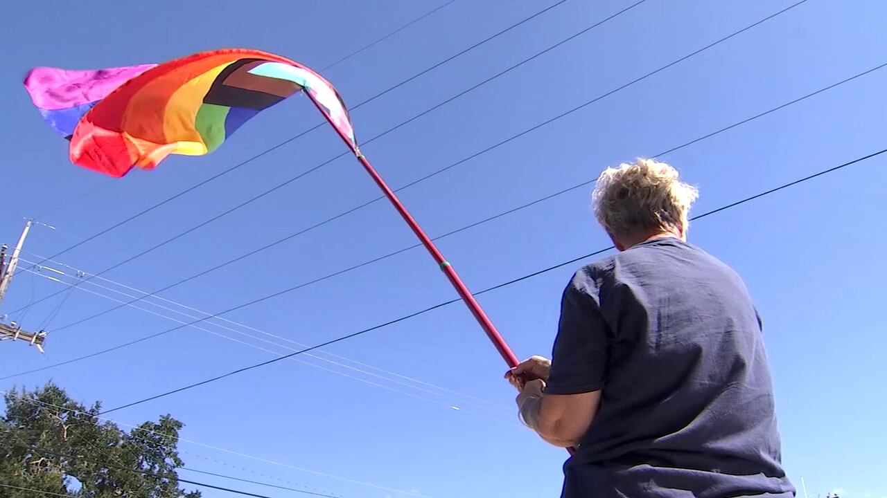 “He marched, with purpose, to the corner and grabbed the Trans flag and the Pride flag out of where we had them posted up and threw them into oncoming traffic,” said witness Andrew Daniel.