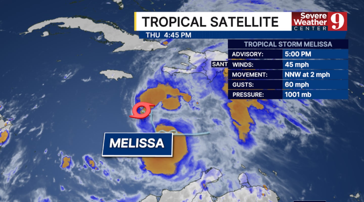 ORLANDO, Fla. — Tropical Storm Melissa continues to drift Thursday evening in the central Caribbean and remains on track to be a powerful hurricane by the weekend.