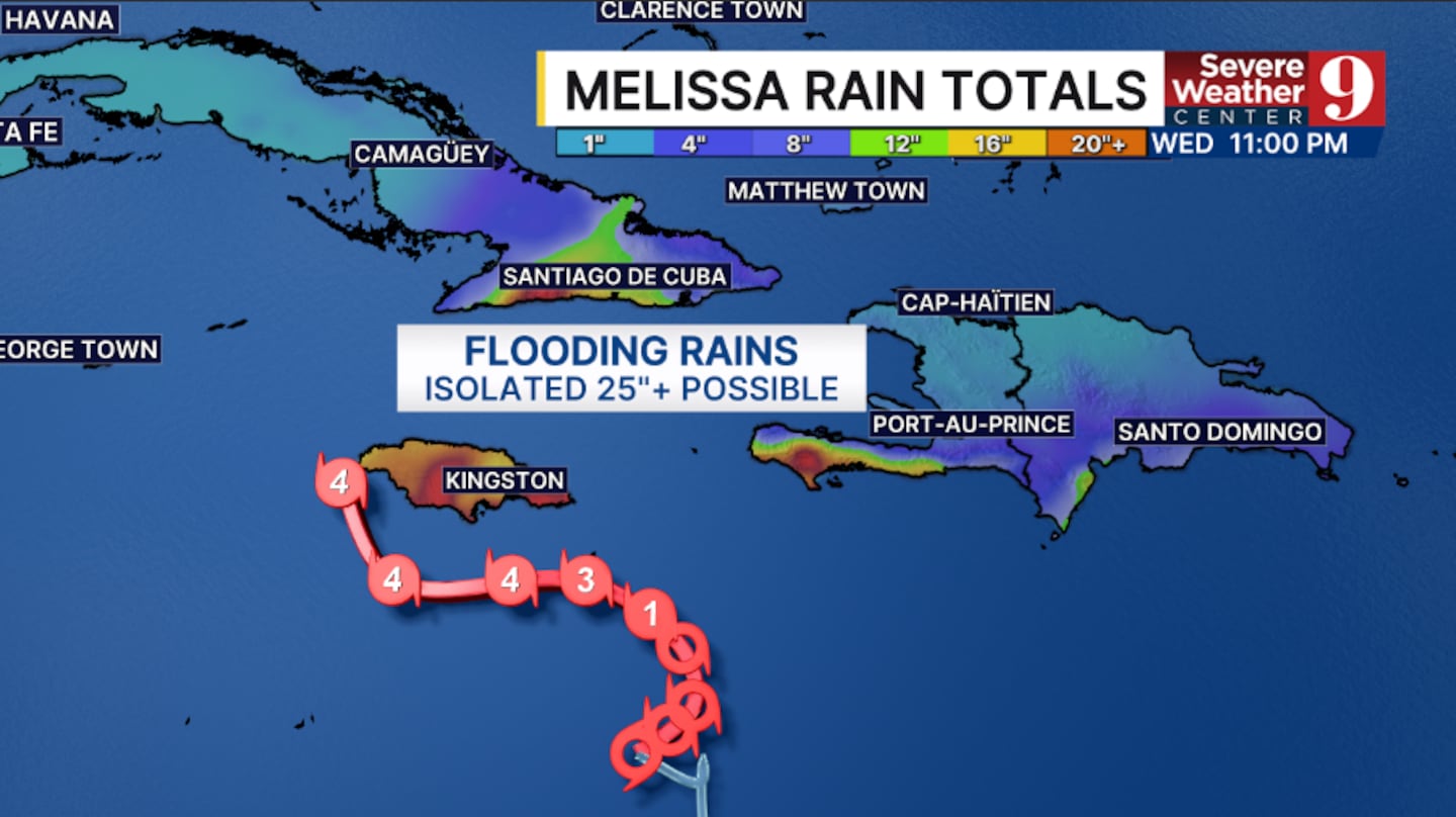 The forecast now has Melissa becoming a Category 4 major hurricane on Sunday.