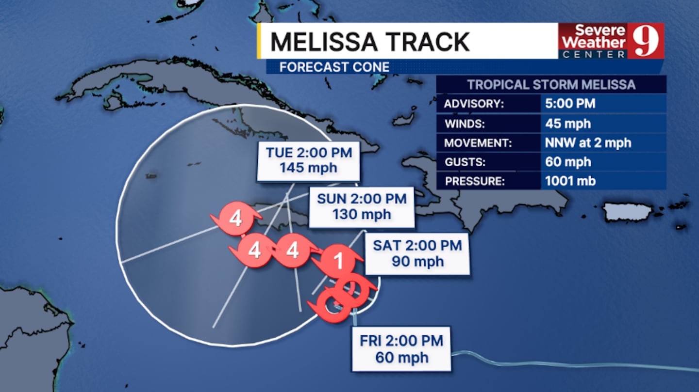 Melissa is on track to strengthen on Friday and become a hurricane on Saturday.