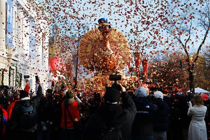 Macy's Thanksgiving Day Parade NEW YORK, NEW YORK - NOVEMBER 27: Crowds watch the 99th Macy’s Thanksgiving Day Parade as it makes its way through Manhattan towards Macy's flagship store on November 27, 2025 in New York City. Celebrating its 99th year, the parade includes marching bands, musical and dance performances, and iconic character balloons. (Photo by Spencer Platt/Getty Images) (Spencer Platt/Getty Images)